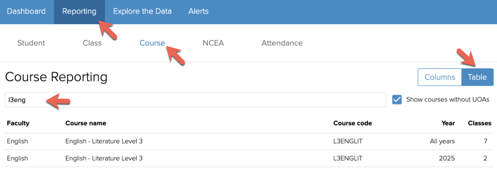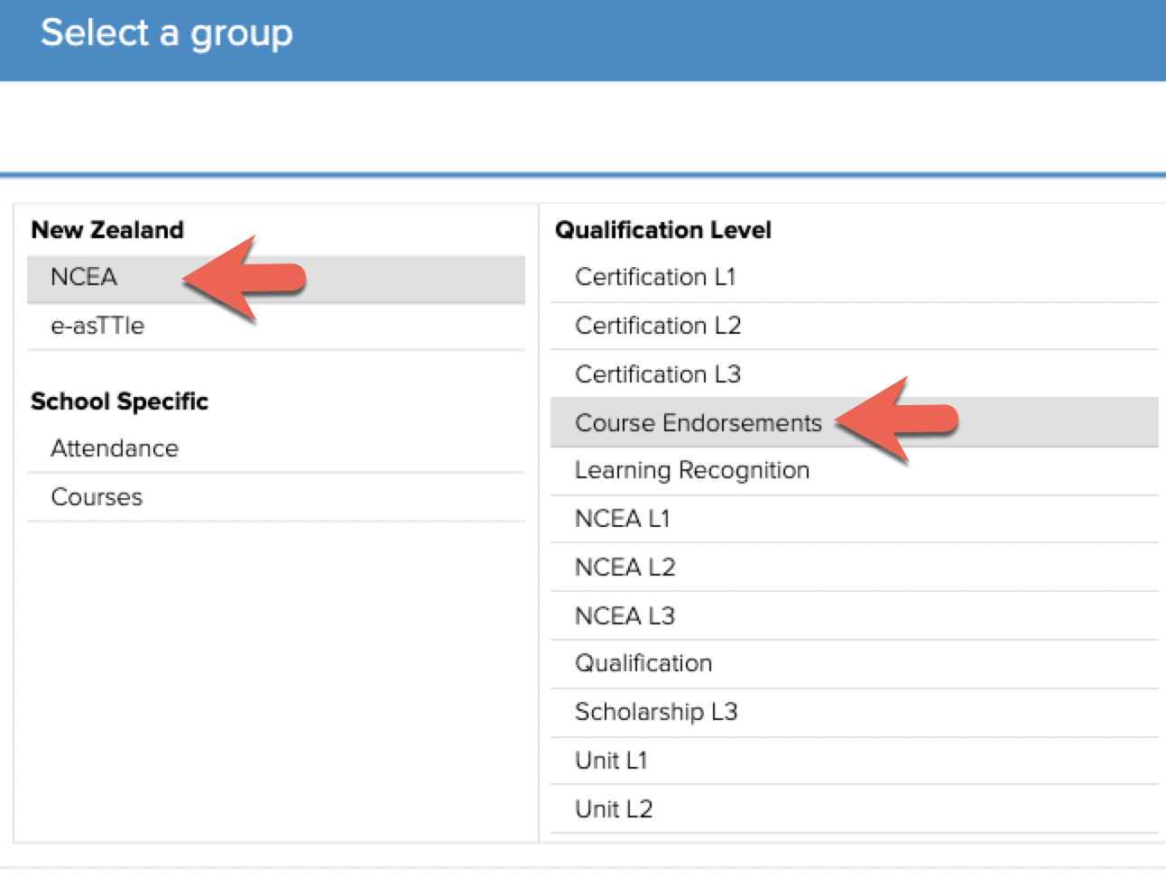 For example, to view course endorsements in your subject area, follow the NCEA pathway shown below.