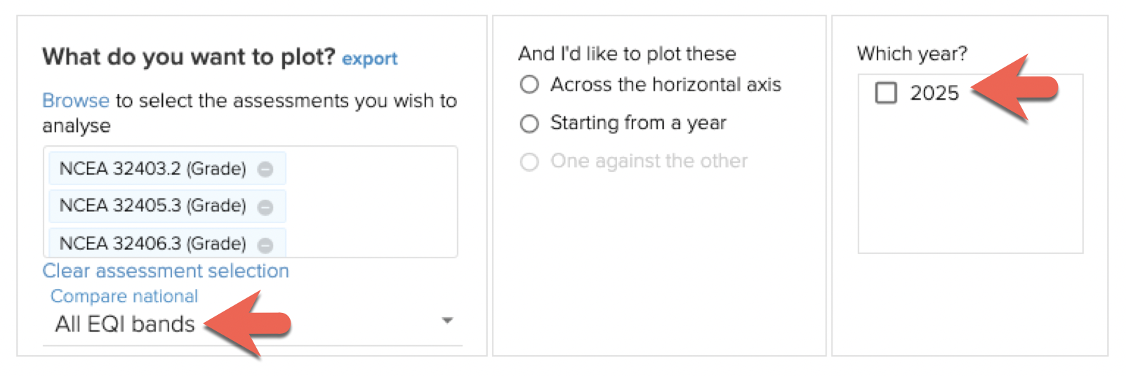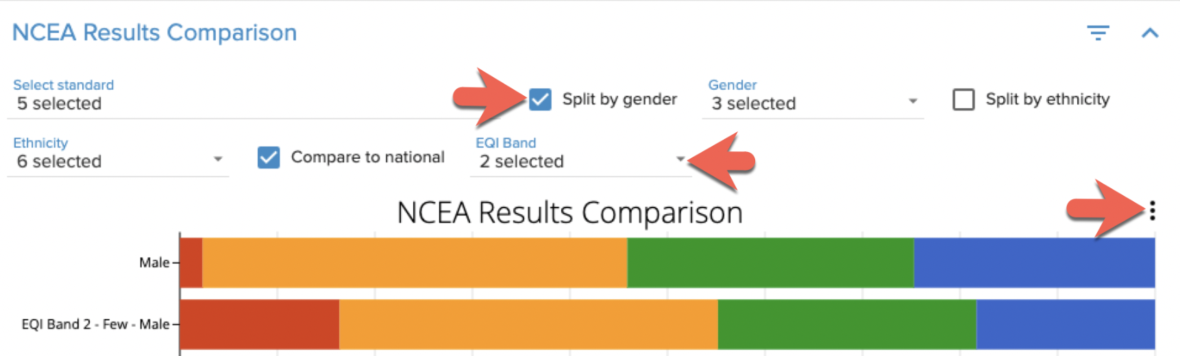 - Results in one standard can also be compared to national results over time in the NCEA Results Comparison. You can do so by opening the filters and selecting only one standard.